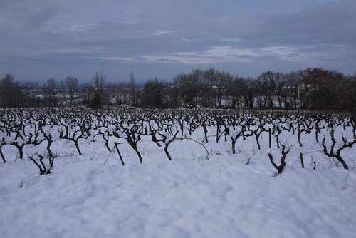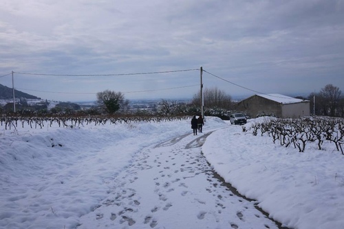 酒莊門口覆雪的葡萄園,拜訪南隆河的甜百酒釀酒師
