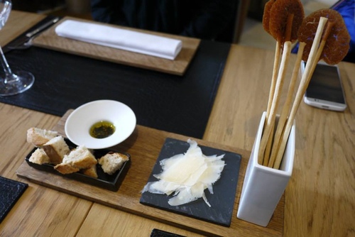 小點:麵包,24個月的起司,黑松露橄欖油,摩洛哥的吧拉(像糖霜)…