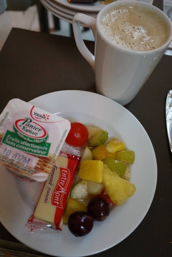 Tip:歐洲飯店,訂房不付早餐,需要另訂;一餐平均12~25歐元,而外頭買個麵包或可頌1.2歐+咖啡2歐,加上前一天買回的點心、水果,其實非常豐盛,所以Diana通常不會選在飯店吃早餐!
