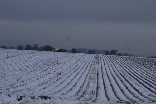 深埋在雪地裡的薰衣草田,只露出頭頂呼吸。