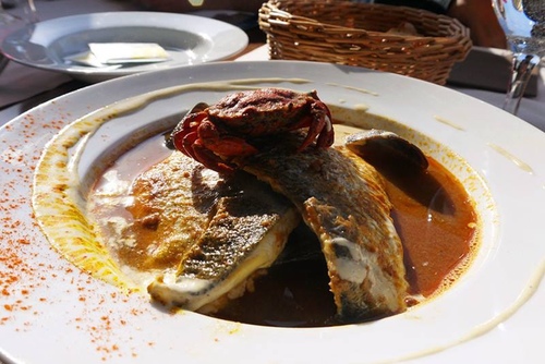 魚湯是由兩種特別的魚,入螃蟹的滷汁與本地的滷汁。