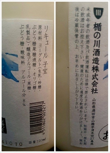 楯野川酒造–季節限定–子宝(優格酒)) 山形縣烏海山麓的牛奶為基底的優格酒, 優格與清酒做結合, 讓清酒口感變得豐富。