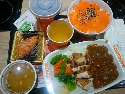 晚餐:鏞記鵝腿飯、咖喱魚蛋、香港小食,和住飯店不能缺少的泡麵,在無敵海景窗前配sky100與維港夜色,也是享受~
