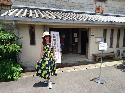 有田是日本陶瓷的發源地,當年是韓國人將燒陶瓷器的技術傳入有田 ,才有了日本製陶瓷器的技術。我們先參觀了有田陶藝歷史館,其實也是沒有人,整間館只有我們兩個人,還特地為了我們播放有田燒歷史,不過是日文版。原來有田燒雖是白底上面繪圖,但隨著年代不同,繪圖的內容也不同。