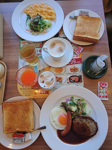 長崎港吃早餐,常盤岸壁(水邊之森公園)美式餐廳就吃美式早餐,有我愛的牛肉漢寶!光這窗美景就值得了~