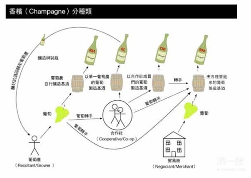 RM – récoltant manipulantRM – récoltant manipulant, 獨立農莊香檳,自有葡萄園,從葡萄栽種,釀制到裝瓶出產皆親力親為,獨立農莊香檳廠多半為家族傳承,酒廠有較多的自由可釀造不同性格的風味,亦即有較多的空間讓釀酒者實驗各種風格的香檳。通常產量稀少,多銷于法國境內或鄰近的歐洲國家,近年有許多香檳愛好者對高品質的獨立農莊香檳趨之若鶩