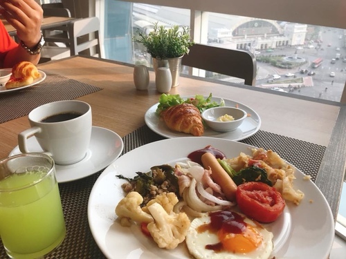 飯店早餐:飯店餐廳裡看著華藍蓬車站的view吃著自助早餐^^