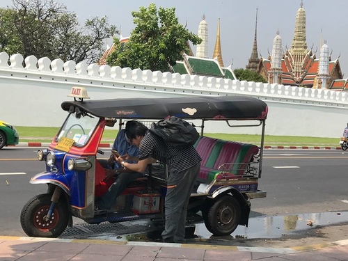 因為目前泰國還沒合法,這位司機態度很好但很抱歉解釋只能載到附近的原因,但已經是最合理方便的交通工具了!