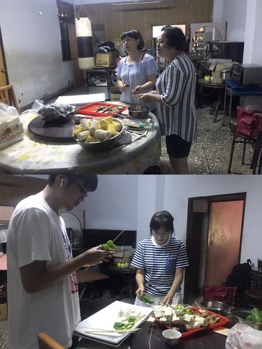 熱情高喊1234567、白色帽子穿吊帶背心的是我們小學老師 劉玉清 到現在還在從事教育樹人。場地是國小同學蘇桂子家門前。這是睽違33年的國小同學會