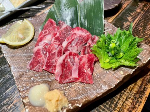 熊本馬肉刺身,使用特別的香料沾醬,馬肉本身吃起來有點嚼勁,但沒有特別味道