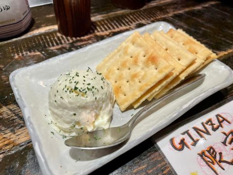 店家附的起司醬佐餅乾,起司香濃,這個我好喜歡,只是搭配用前菜我竟然吃光