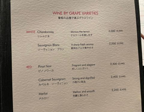 單杯酒單,我點了Chardonnay白酒和Cabernet Sauvignon紅酒
