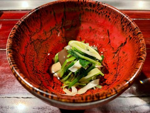 料理蔬菜時,送上的是蔬菜沙拉,和風醬汁清爽好吃