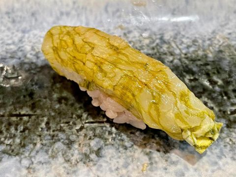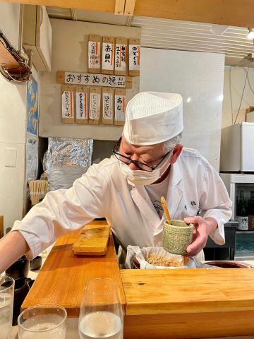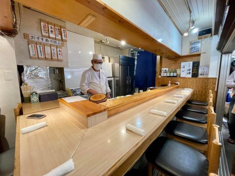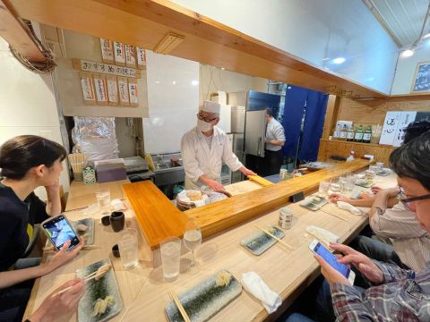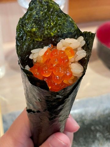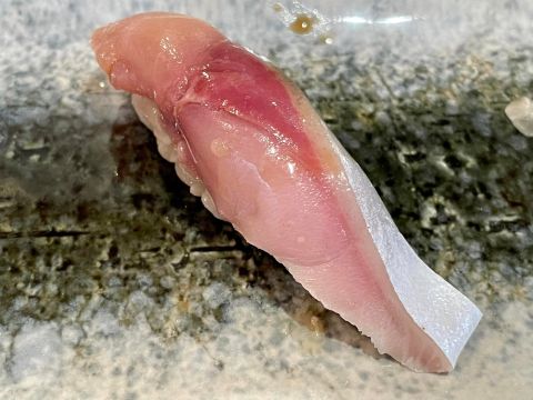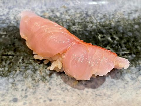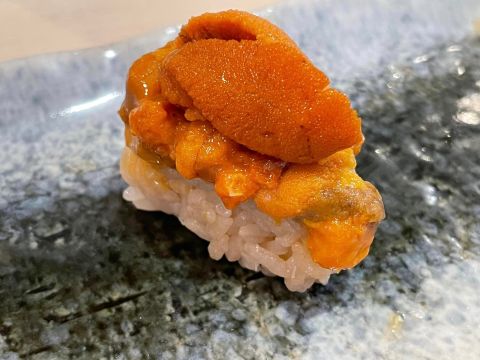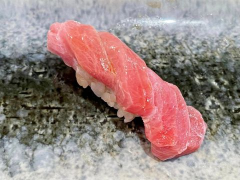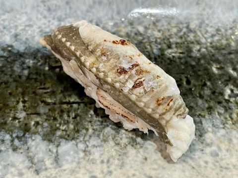總共只有8個座位,開店前1小時就來排隊品嚐第一輪。餐點分成三種價位,依據當天師傅進的魚貨來決定,內容物有些一樣,有些則是隨著價位高低,所使用的食材也不盡相同。用的醋飯,是紅醋飯。以海鹽調味的手法,而不是用醬油,搭配清酒超級好喝!