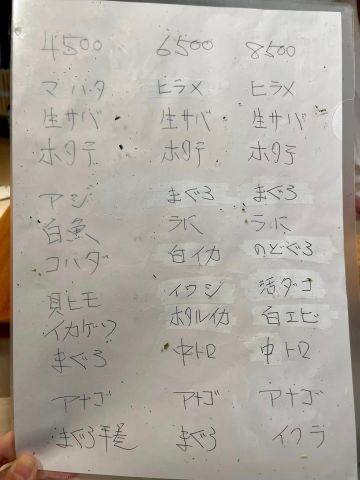 三種價位的手寫菜單,一共11貫。既然來了,就來品嚐8500的,吃些較高檔的食材(以免遺憾)
