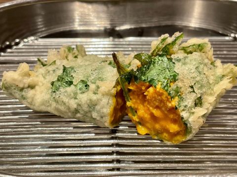 據說炸海膽料理一定要點,所以我點了No3來品嘗(和No2的價差可以在筑地市場吃一整盒海膽呀)