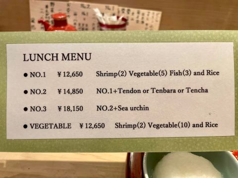 No2. 10款天婦羅+三選一(天丼、天茶、天婦羅?) 14850円