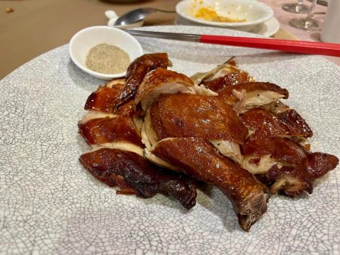 接著上場的是大三元招牌烤鴨,金黃外皮帶點微焦超美味,一定要預訂才吃得到。
