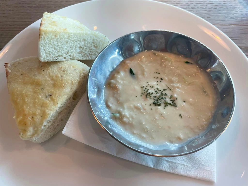 手工麵包鬆軟好搭,搭配濃郁蟹肉醬,搭配白酒舒服好吃