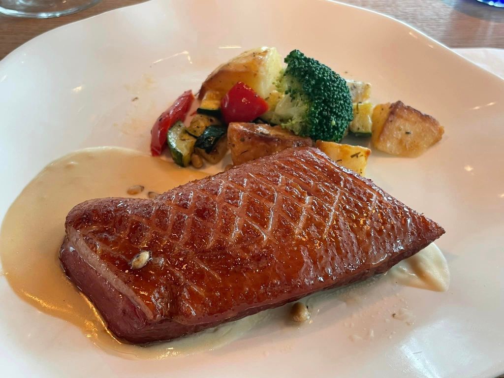 有兩款一級園紅酒搭配主餐炙烤鴨胸