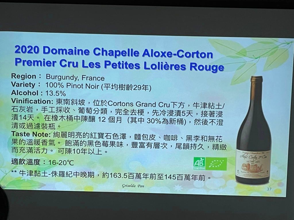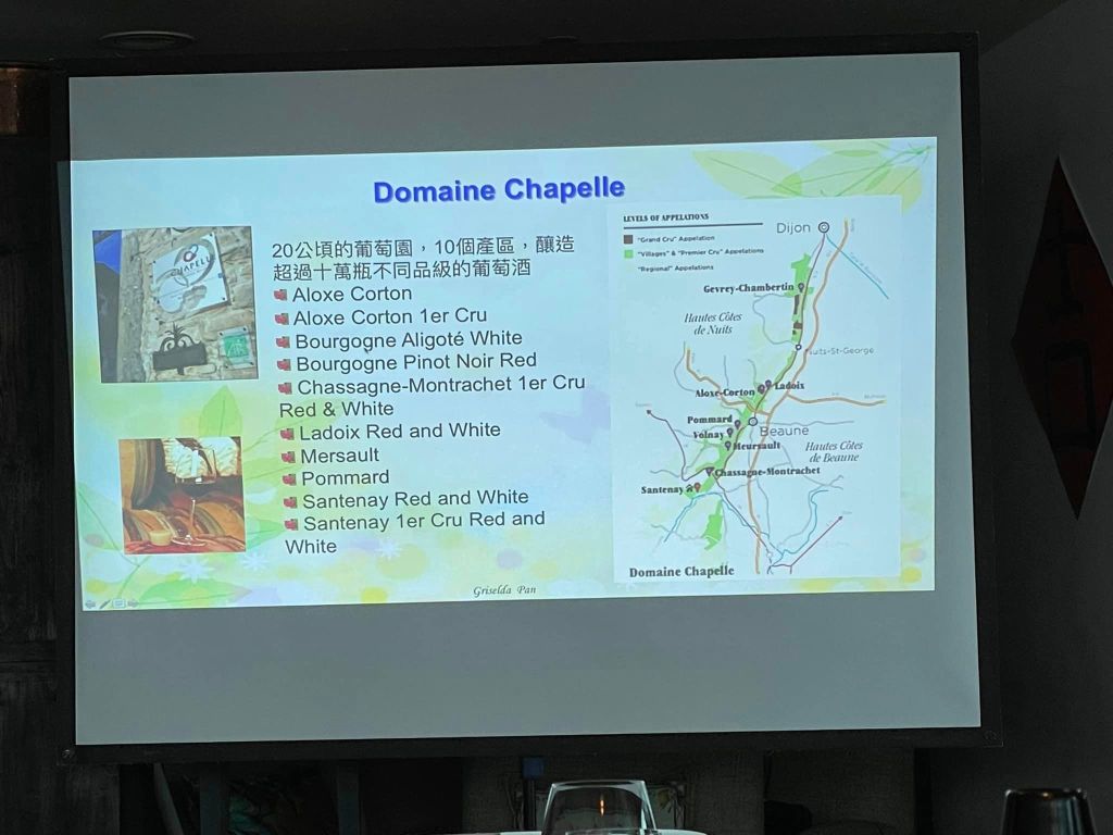 這次由開心品酒會主辦Griselda Pan分享她親自從葡萄酒聖地~Burgundy布根地,獨家代理進口Domaine Chapelle的六款美酒。