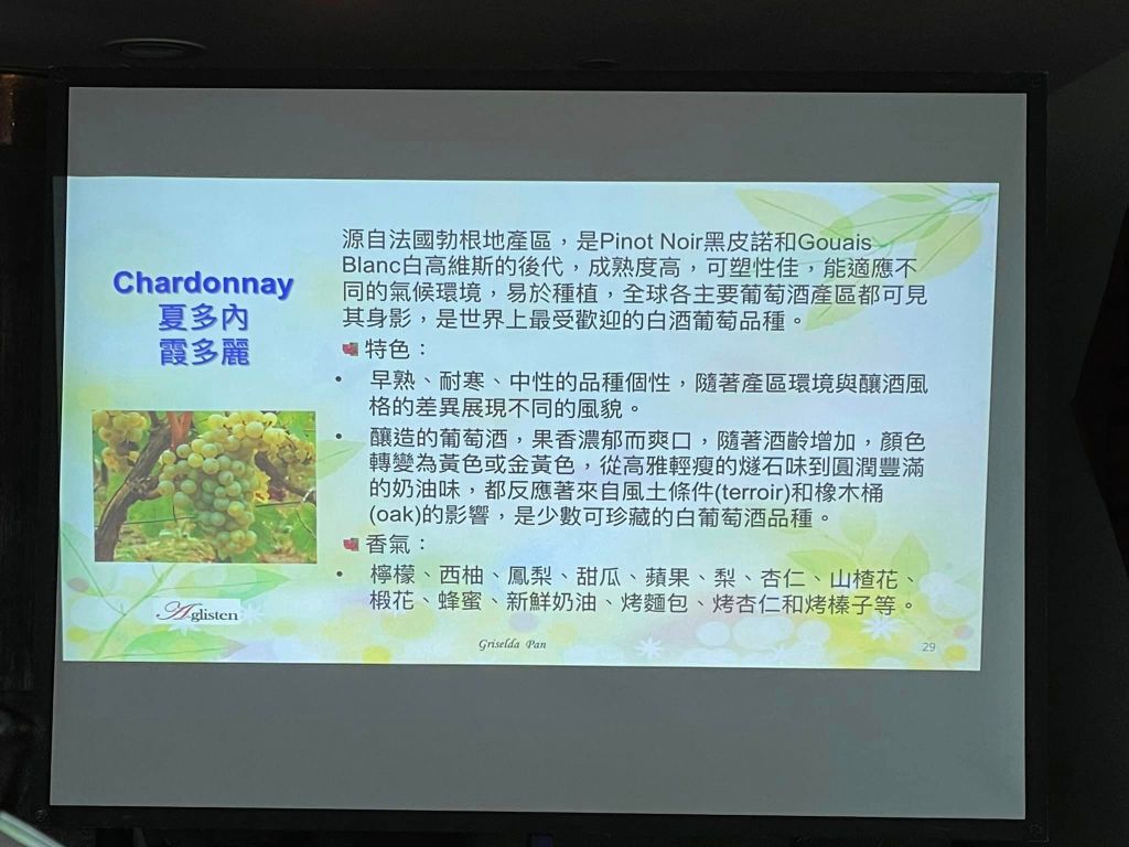 在品酒前,由Griselda Pan先帶領大家了認識葡萄酒(這裡放上投影片,咱們溫故知新嚕)