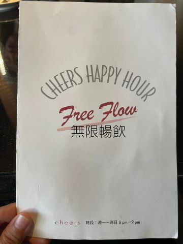 兩個女生(國小同學),忙裡偷閒相約君悅酒店Cheers歡飲廊,平日晚間3小時調酒🍸無限暢飲♾️…我們說好身上要掛個牌子,每一款的酒精濃度都很夠,配上超大盤綜合炸物,超值!