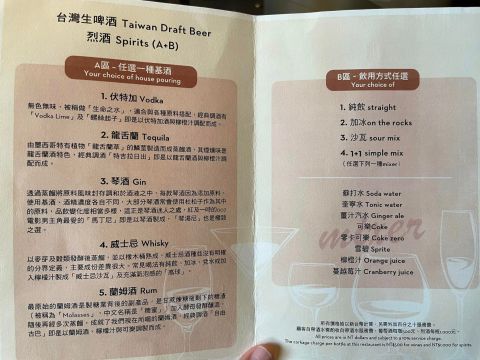 除了調酒,這裡也有豐富的輕食與異國料理,可以搭配酒單享用。無論是住宿或想者朋友放鬆喝一杯,來場飯店品酒,都很合適。就把酒單筆記在這裡嚕~