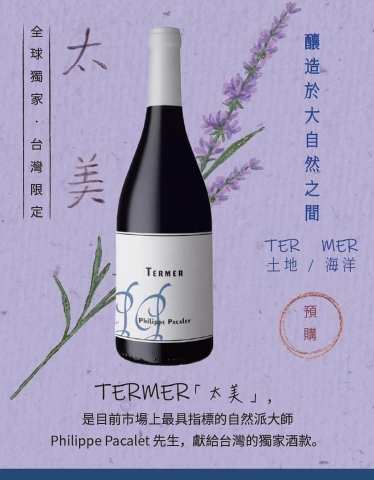 Termer 是目前最具代表性的自然派大師Philippe Pacalet特地打造給台灣獨家販售的酒款,葡萄來自優的普羅旺斯,且貫徹PP的 自然派哲學,100%原生酵母發酵,採取最少的人工干預。 將普羅旺斯最美的風土條件完整地保留在酒瓶內,喝一 口,就不禁讚嘆:「太美」了!