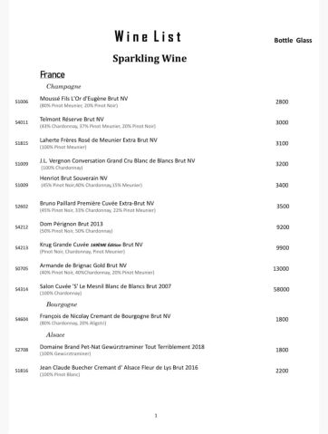 Wine Pairing : Casual 4 glasses $ 1280. Typical 7 glasses $ 1680。