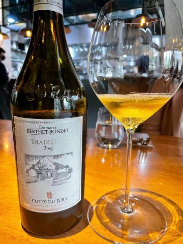 法國侏儸區(Jura)的傳統白酒,風味特別,有雪莉酒、白蘭地香氣,酒釀蘋果醬,香料中藥味,烏梅,蘋果、梨子、奶油等豐富變化的香氣,構造酸度高、帶鹹感。搭配香料味的南洋食材。來自台中詩人酒窖的酒。