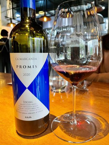 義大利托斯卡尼(Toscana)產區,GAJA酒莊。葡萄品種:55% Merlot, 35% Shiraz/Syrah, 10% Sangiovese。裙子紫紅色,黑莓、黑櫻桃香氣,尾韻煙草、雪松。搭配羊肉與牛排。