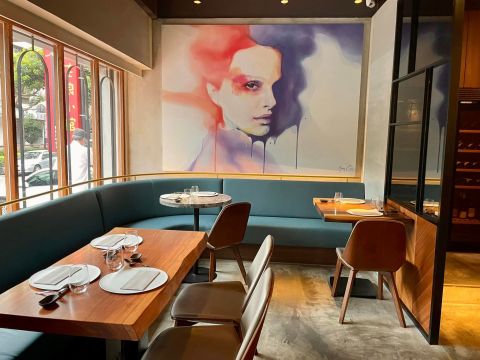 進門左側座位區,有幅法國國旗色彩的藝術畫