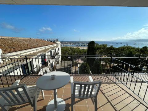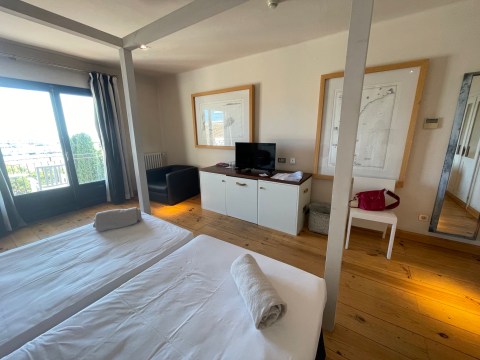 從房間陽台就可以看到遊輪、沙灘、比基尼