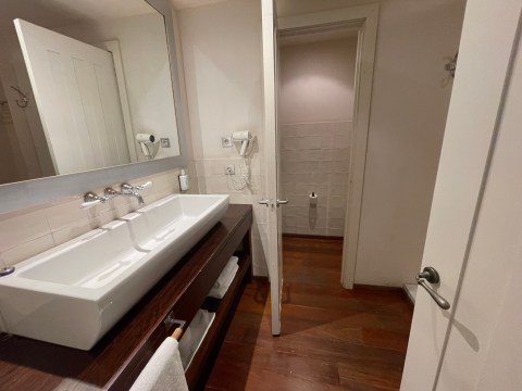 乾溼分離的浴室,盡頭另一個門裡是廁所