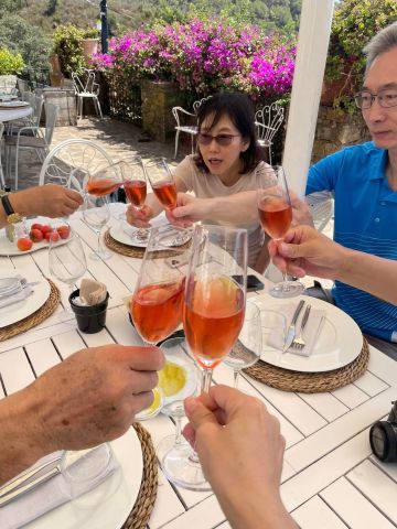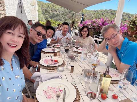 我們在戶外庭院品酒、午餐,陽光十分耀眼