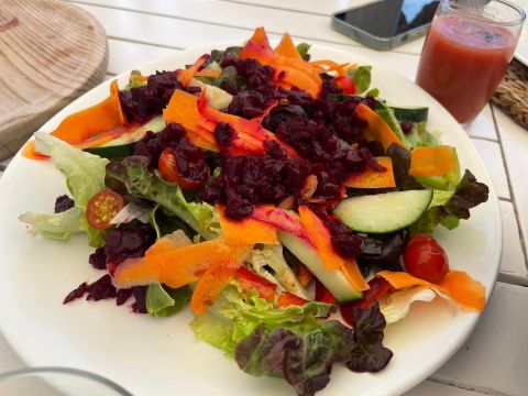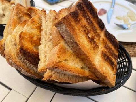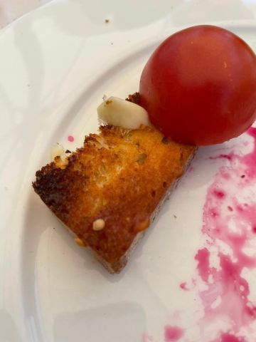 烤麵包,教我們本地的吃法要搭大蒜和番茄。先將生大蒜抹在麵包上,在抹上番茄。(這個吃法在後來的旅程發現都是提供這樣的食材享用)