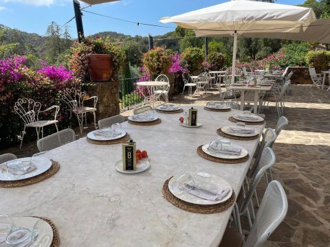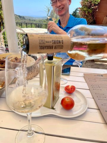 Bell-lloc winery酒廠莊園,我們在這裡品嘗酒莊裡加塞隆尼亞產區的酒;陽光耀眼下庭園午餐,餐間任喝酒單裡的酒任喝不用錢(超大方)午餐享用到下午四點🕓