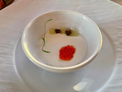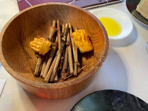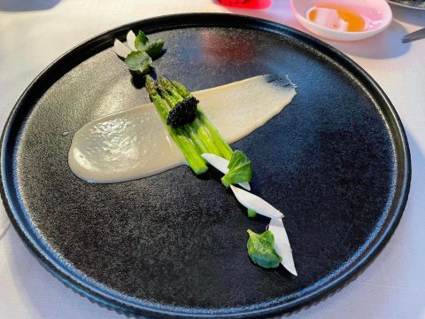 綠蘆筍配帝國魚子醬和蘑菇蛋黃醬