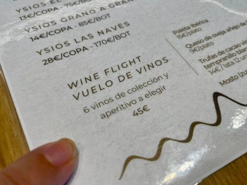 這裡可以提供6款酒的單杯試飲,6款全喝只要45€