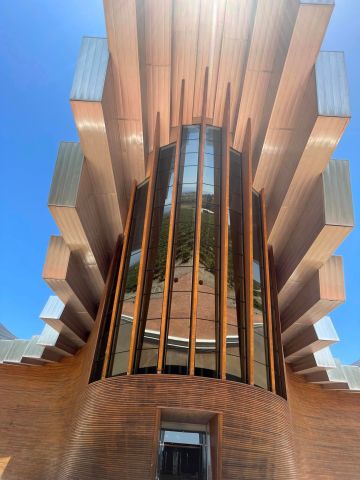 外形如波浪般延綿起伏,又如廟宇般宏偉肅穆,帶有濃郁的宗教氣息。已經成爲里奧哈阿拉維薩(Rioja Alavesa)產區的標誌性建築並被認爲是一種葡萄酒的禮拜場所。