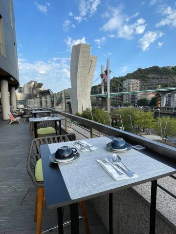 飯店在古根漢博物館對面、Nervion River旁邊(從飯店門口看古根漢)