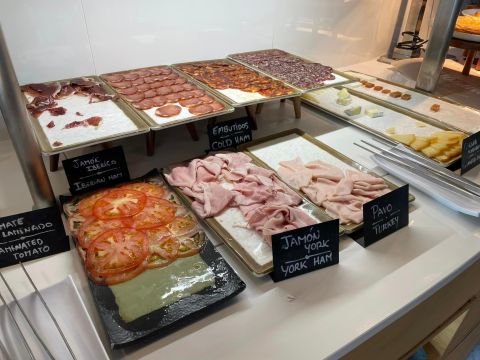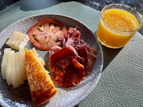 我的早餐,喜愛的伊比利火腿佐哈密瓜、蛋糕 番茄 與起司
