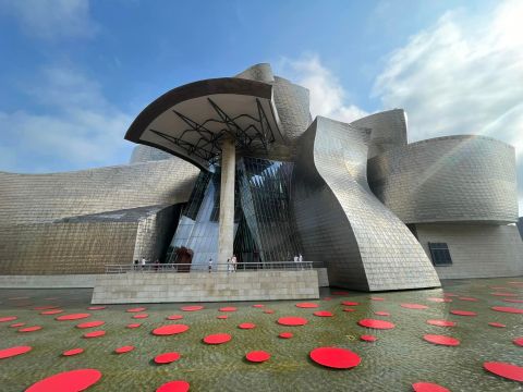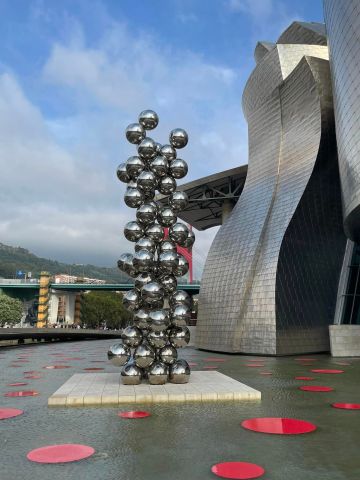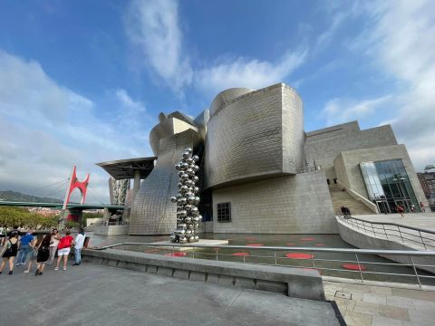 如一艘巨艦坐落於河畔,由法蘭克.#蓋瑞 設計的畢爾包古根漢美術館,建築本身便是一項建築藝術作品,更是世界首屈一指的當代藝術殿堂,為畢爾包這座重工業都市,帶來了全新的生命。大量使用鈦、鋼等金屬元素,流線外形十分壯觀,呼應了當地歷史悠久的鋼鐵工業和造船業。