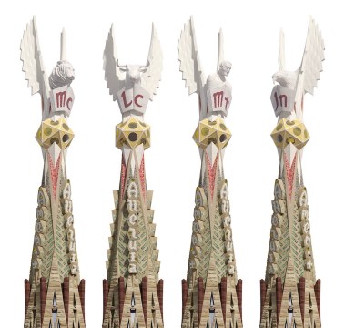 西班牙巴塞隆納(Barcelona)由建築師高第(Antoni Gaudí i Cornet)設計,歷經超過百年,預計於2026年竣工的聖家堂(Sagrada Família)共有18座高塔。高塔從低到高代表十二使徒、聖母瑪利亞、《聖經》四大聖史(福音書著者)和最高的耶穌基督。