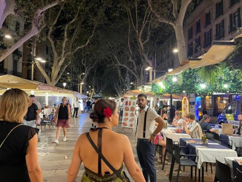 吃完海鮮大餐,住在蘭布拉大道,不甘寂寞的年輕人,就出來蘭布拉大道續攤