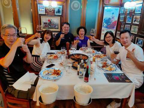 醉飲西班牙一行人的最後一晚(明天有人往羅馬、有人飛倫敦)慶祝舉杯