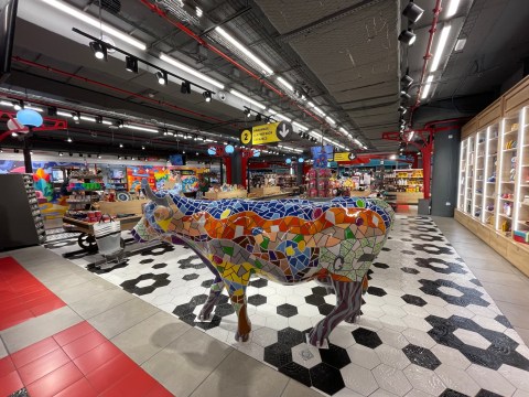 巴賽隆拿機場,鮮豔的馬賽克。要回台灣了,捨不得和西班牙的美食、美酒與藝術建築的豔遇呀!