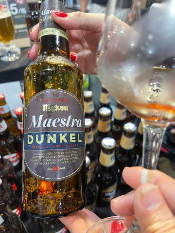 原本想離開前往後面啤酒區去找啤酒,Sales小姐很厲害的順便推薦了他們家的西班牙啤酒;上個月我們才剛喝完一箱西班牙金星啤酒,現在對西班牙的啤酒興緻很高,所以就又待下來試飲啤酒。