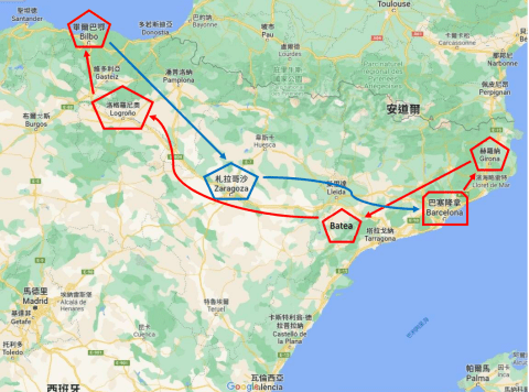 拜訪的著名建築藝術家的作品(RCR Arquitectes、Frank Gehry法蘭克・蓋瑞、Antonio Gaudí安東尼·高第…等);一行人也暢飲了三個西班牙葡萄產區(加泰隆尼亞 Catalonia、里歐哈Rioja、阿拉貢Aragon),最後回到巴塞隆納。